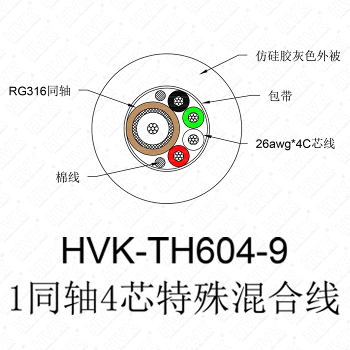 1同軸4芯特殊線 仿硅膠灰色